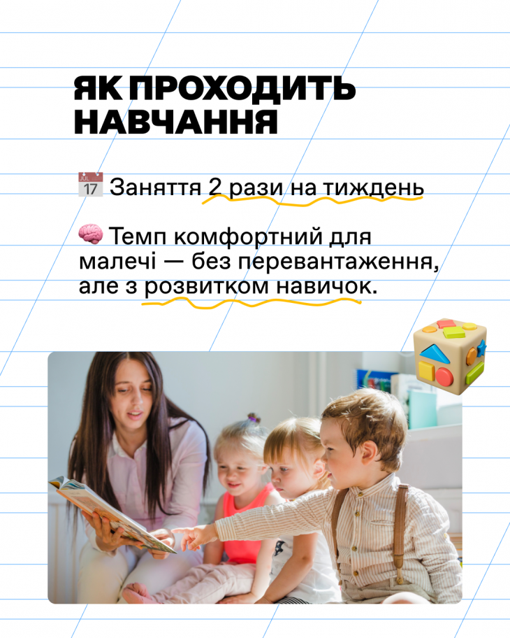 Залишайте заявку на пробне заняття на нашому сайті: https://www.alterraschool.space/preschool