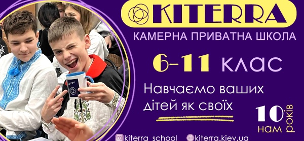 КІТЕРРА - це камерний ліцей з високими академічними стандартами. Десять років тому школу заснували батьки для своїх дітей і вийшло так файно, що продовжуємо вже для ваших.