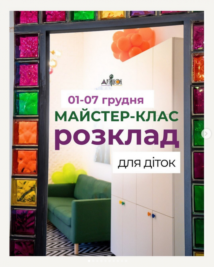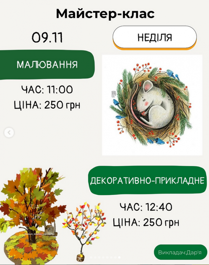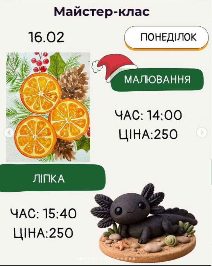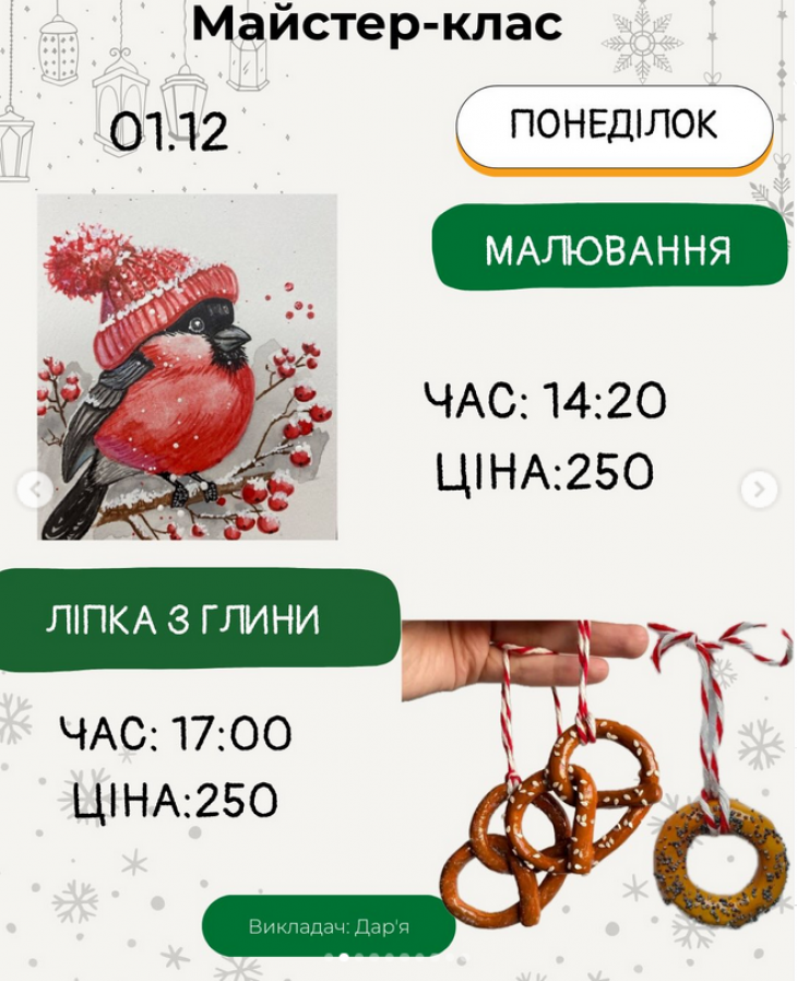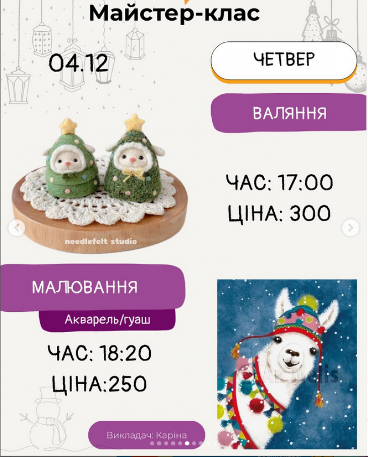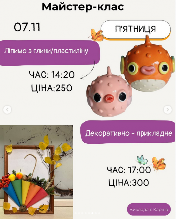 Розклад майстер-класів в студії "Артишок" (на слайдах).