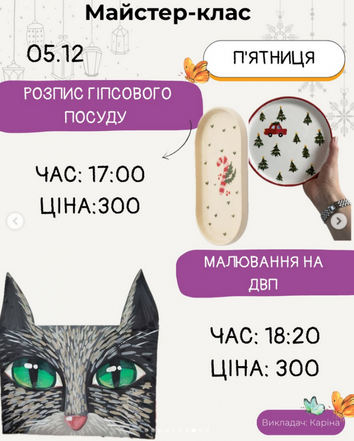 участь від 250 в залежності від обраного майстер-класу: 250 грн