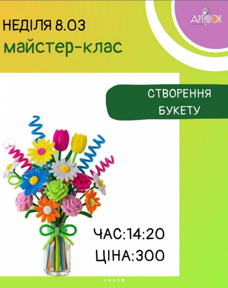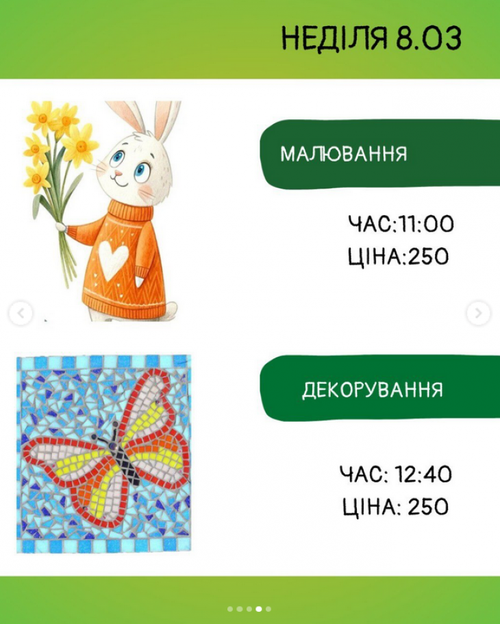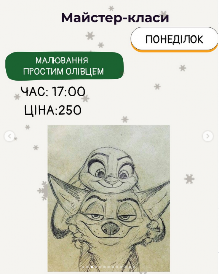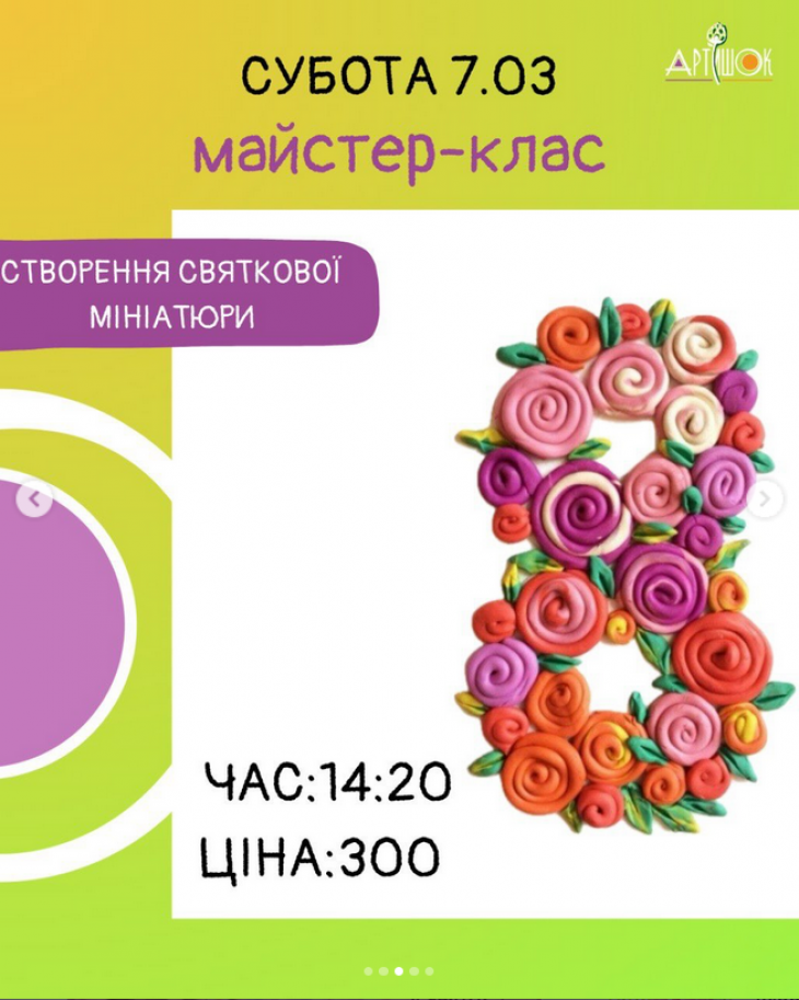 Розклад майстер-класів в студії "Артишок" (на слайдах).