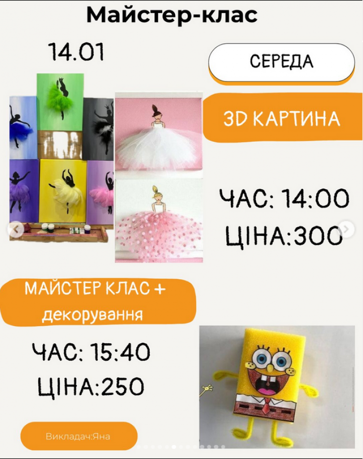 Кожен майстер-клас — це можливість для дитини проявити себе, розкрити свій талант та отримати неймовірне задоволення від творчості!