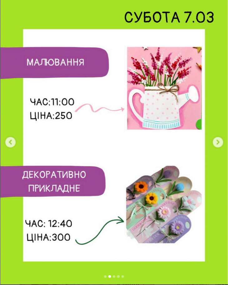 Обирайте зручний день у розкладі та приходьте творити разом з нами.