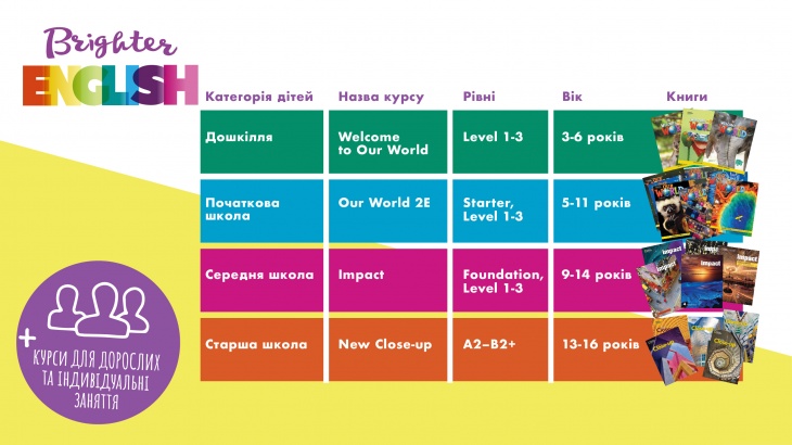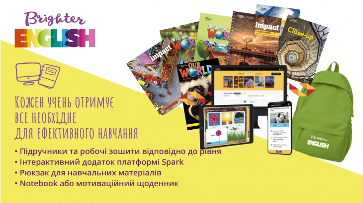 - Сучасні навчальні матеріали від National Geographic і Cambridge та онлайн-платформа
