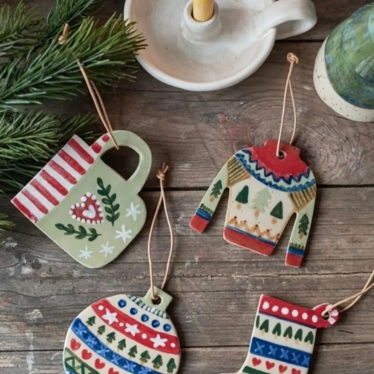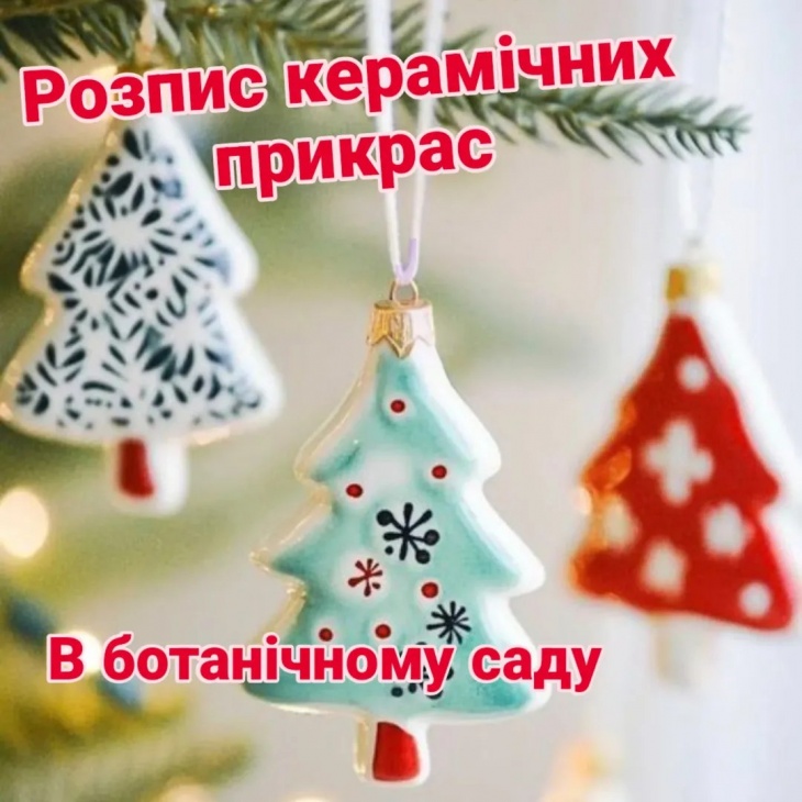 На майстер-класі Ви зможете вибрати собі три керамічних прикраси серед різних варіантів та розписати їх фарбами для кераміки з додаванням святкових блискіток та стрічок.