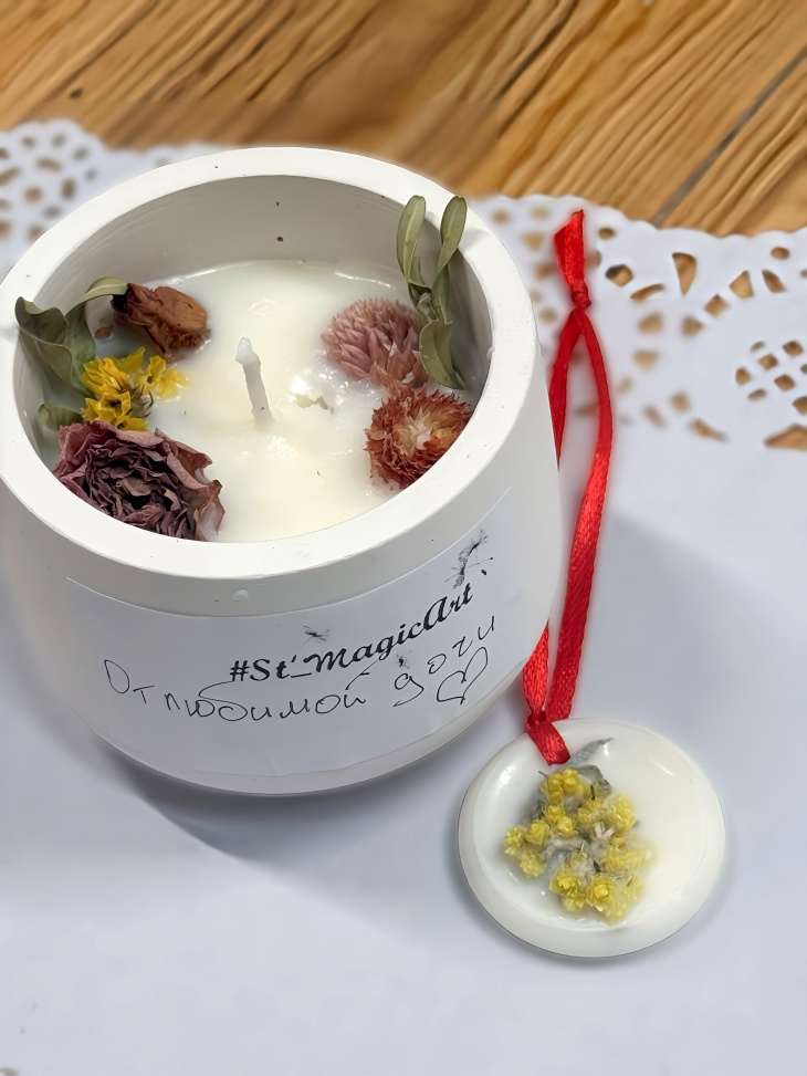 Кожен учасник забере з майстер-класу соєву свічку з тематичним декором та неймовірним ароматом у кашпо, а також гарні аромасаше з сухоцвітами. А ще отримаємо цікавий досвід та відпочинемо у чарівній атмосфері цього захоплюючого майстер-класу.