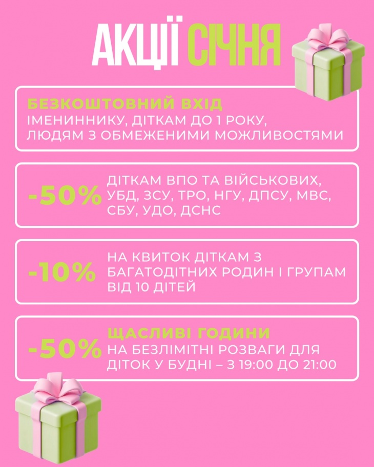 -50% на безлімітні розваги для діток у будні дні — з 19:00 до 21:00