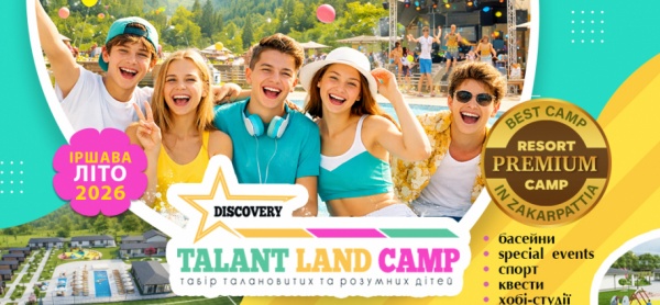 TALENT LAND — це преміум resort camp у Закарпатті для дітей та підлітків 7–16 років, де комфортний відпочинок поєднується з авторською програмою, спортом, творчістю, басейнами, special events, друзями та щоденними яскравими подіями.