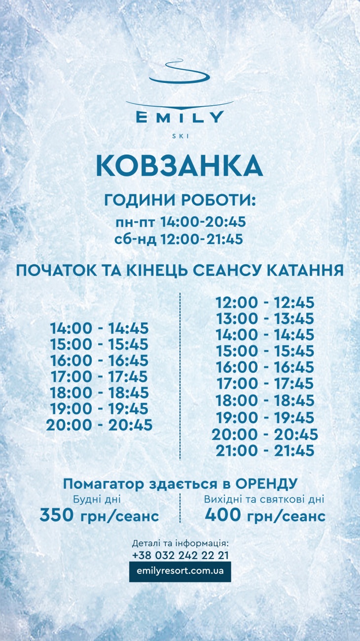 Покататись на ковзанах можна буде з 20 листопада щодня на територіії відпочинкового комплесу поблизу Львова - Emily Resort. Це одна з найновіших ковзанок, розташована за чотири кілометри від Львова, з неймовірною панорамою.