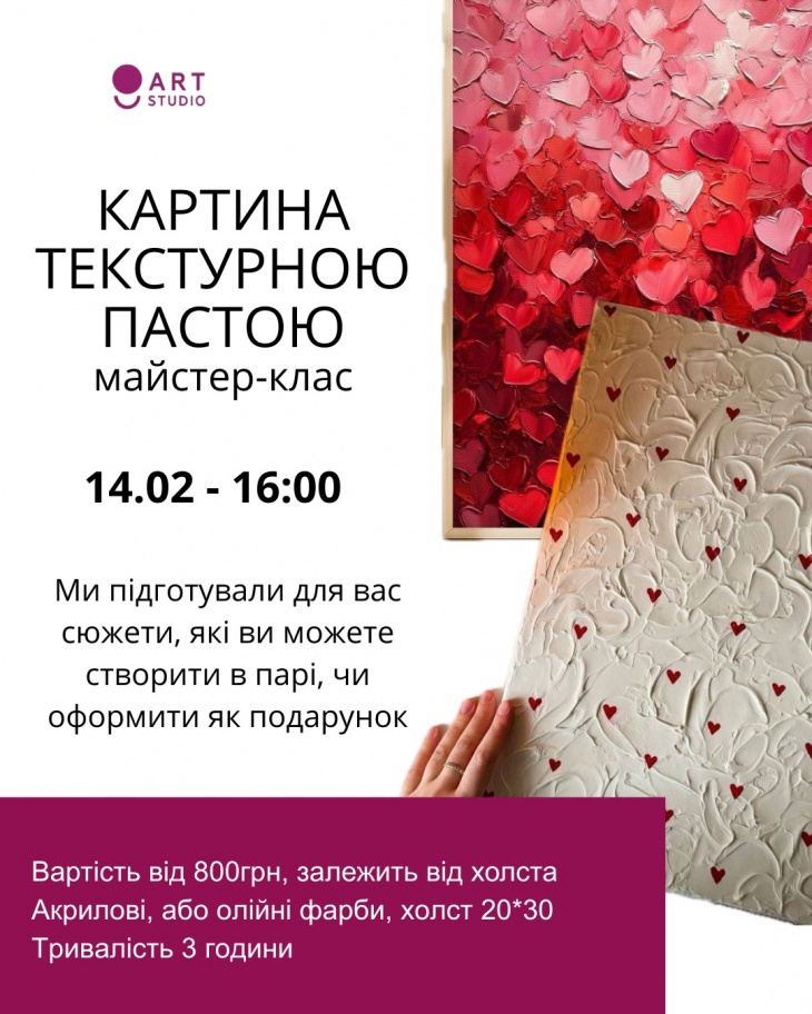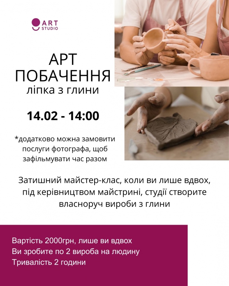 Окремо хочемо виділити дуже актуальний формат «творчих побачень» для двох - є змога провести зустріч 14 лютого, чи в будь-який інший день.