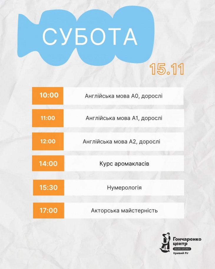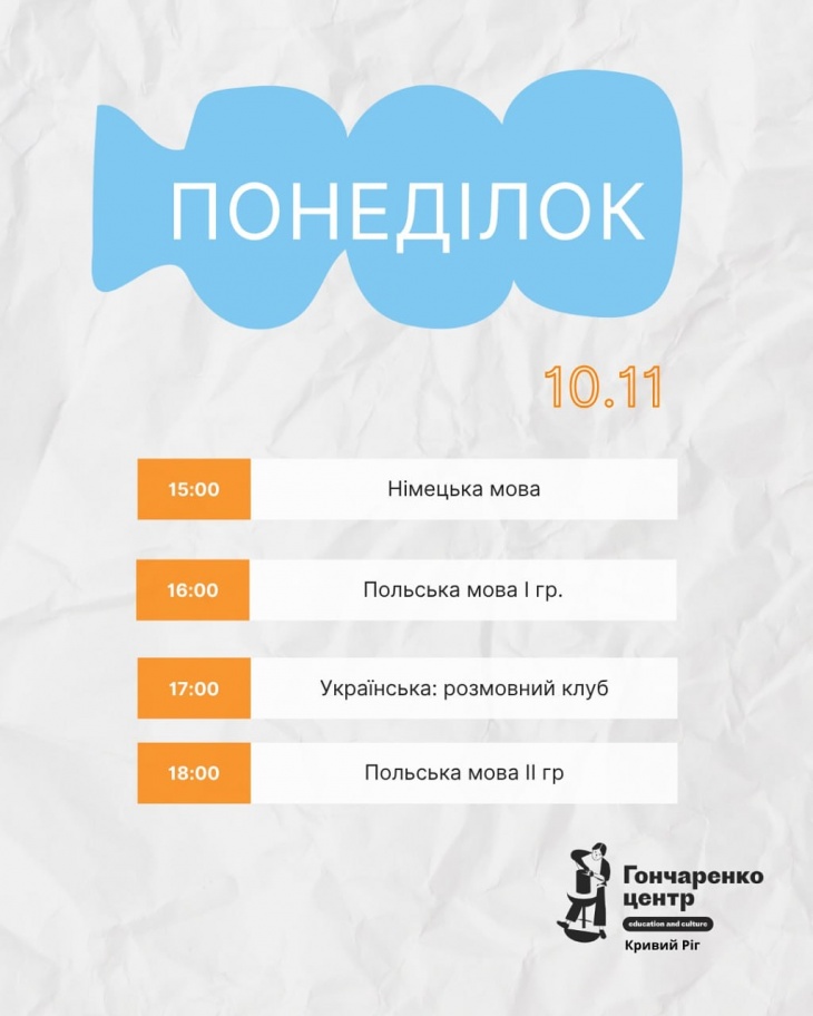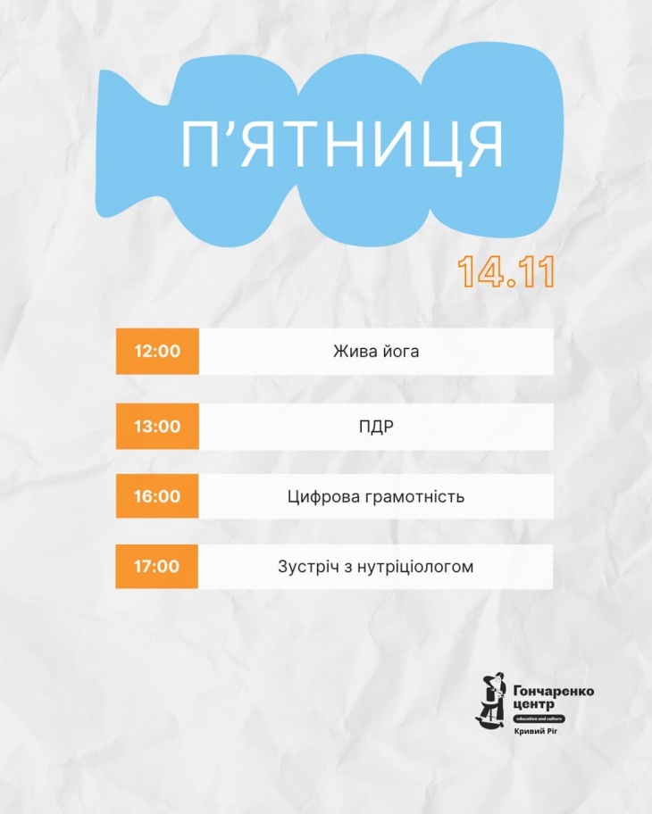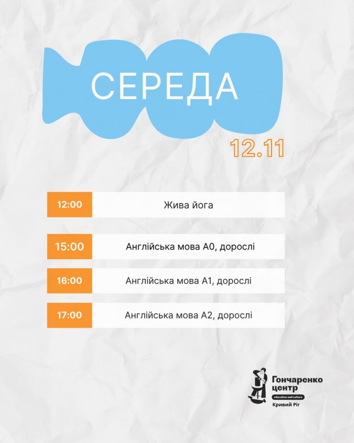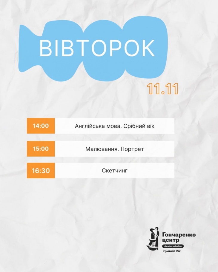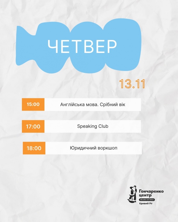 До всіх анонсів будуть прикріплені реєстраційні форми. Підписуйтесь на наш Telegram-канал (https://t.me/goncharenkocentrekryvyirih)
