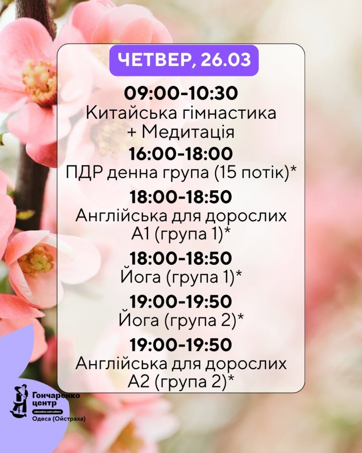 Анонсуємо новий тиждень з Гончаренко центром Одеса (Ойстраха)