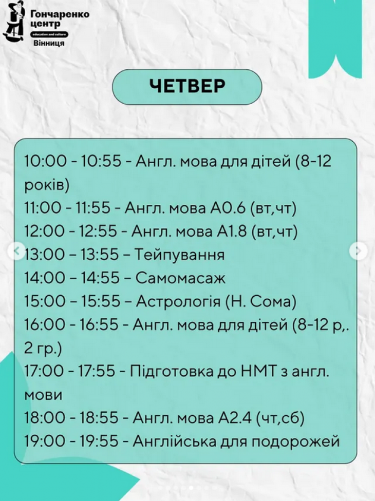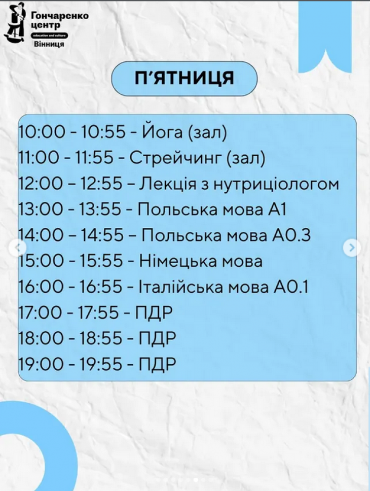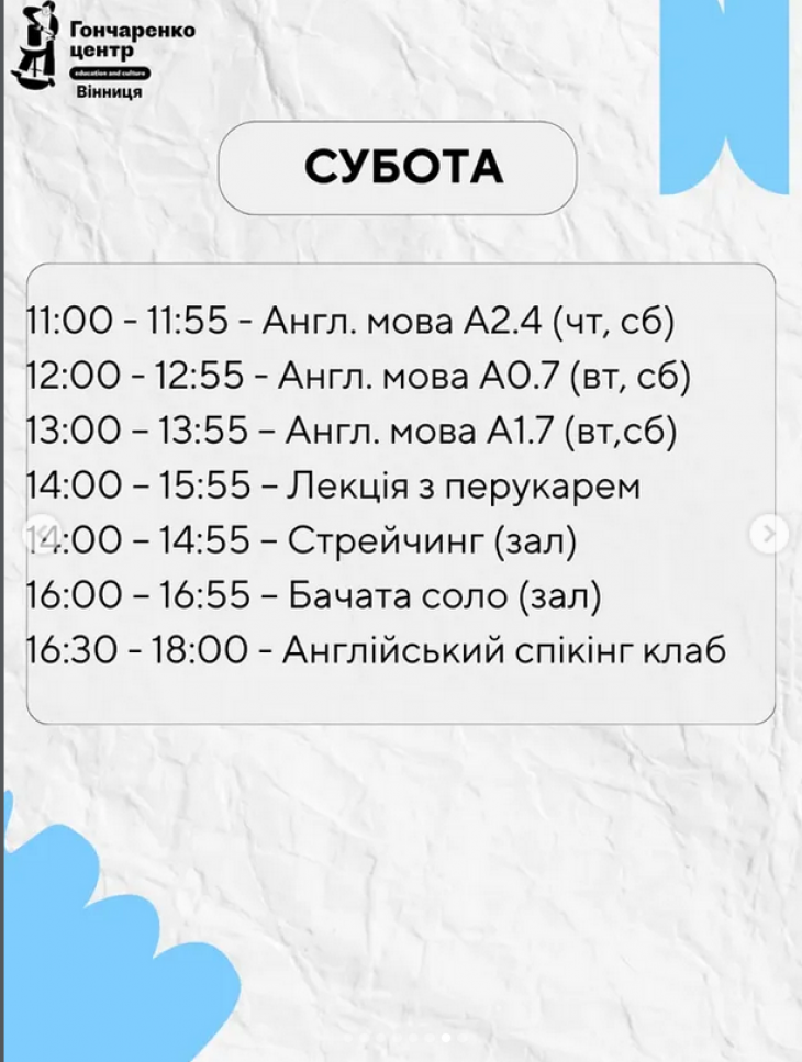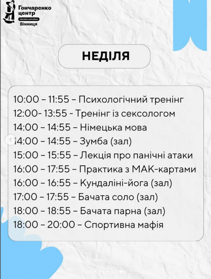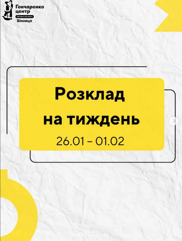 У Гончаренко Центрі Вінниця традиційно підготували для вас щось цікаве та надихаюче