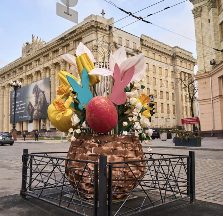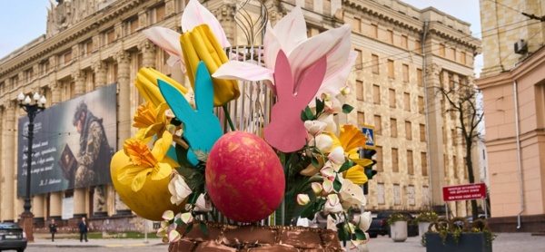 У центральній частині Харкова, на площі перед Оперним театром, встановлено великодні інсталяції.