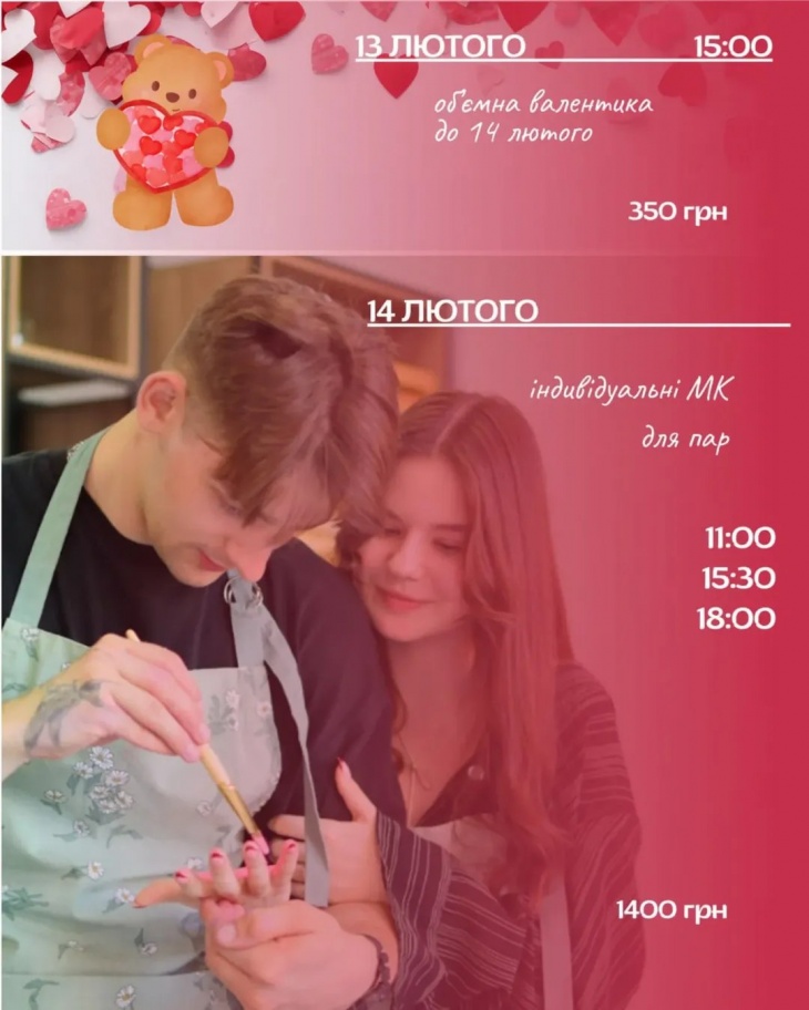 МК для пар: 1400 грн (індивідуальні)