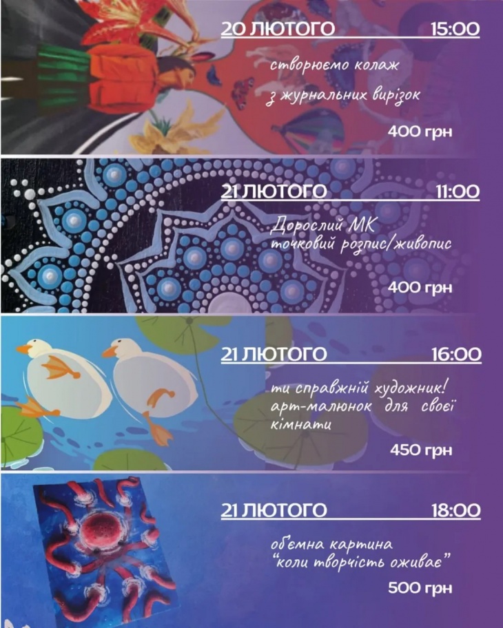 Розклад майстер-класів в аrt MUR на місяць