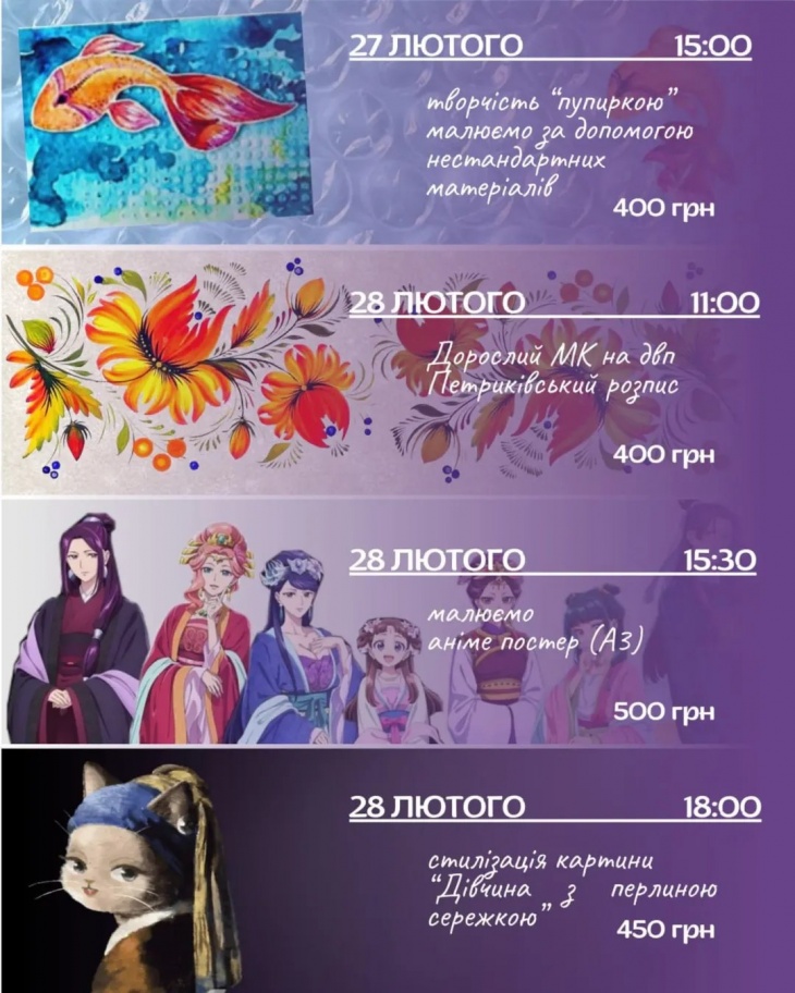 Обирай майстер-клас, бронюй місце й поринь у творчий час.