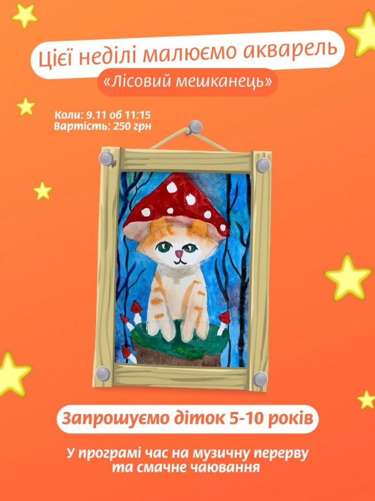- на 11:15 малюємо акварель «Лісовий мешканець» для діток 5-10 років