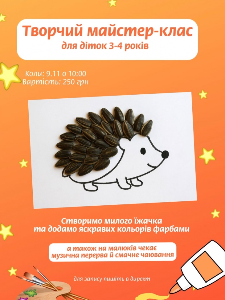 - на 10:00 поробка «Їжак» для діток 3-4 років