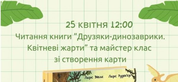 Запрошуємо дошкільнят на читання книги «Друзяки-динозаврики. Квітневі жарти» та майстер клас зі створення карти