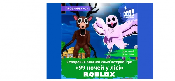 Реєстрація обов’язкова: https://vinnitsa.itstep.org/event/creating-your-own-ninety-nine-nights-in-the-woods-game-on-roblox
