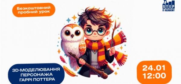 Запрошуємо батьків та дітей 7-14 років на захоплюючий пробний урок "3D-моделювання персонажа з фільму Гаррі Поттер"