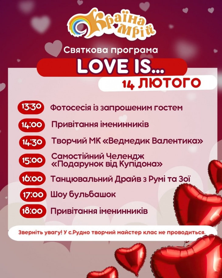 Чекаємо вас 14 лютого у ДРЦ «Країна Мрій» у вашому місті