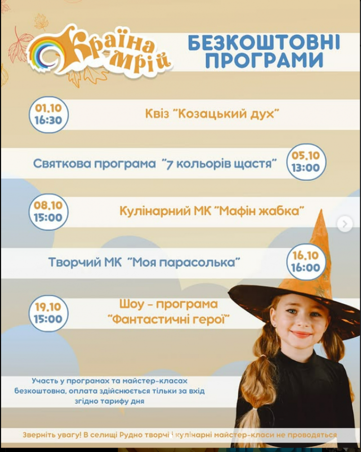 Ви сплачуєте лише вартість вхідного квитка дитини згідно тарифу дня, участь у майстер-класі та розважальних програмах безкоштовна.
