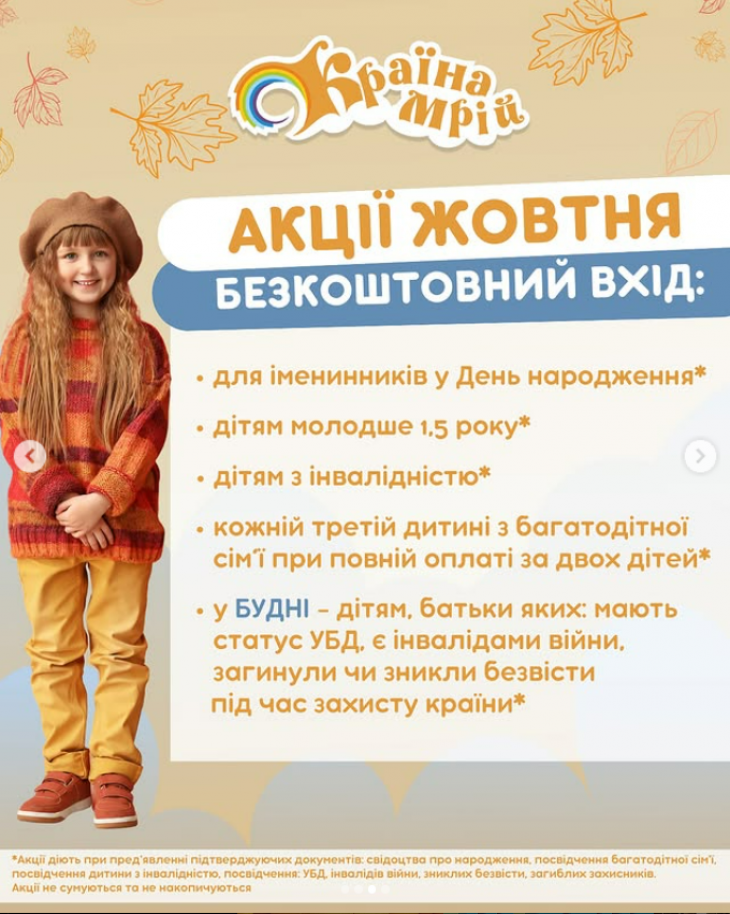 Ми створюємо яскраві емоції та незабутні моменти без жодних додаткових витрат! Просто приходьте та отримуйте максимум задоволення разом з дитиною.