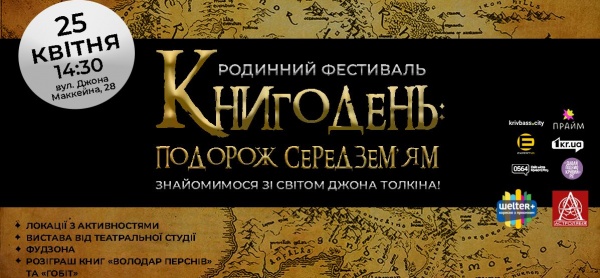 Цього року наш родинний фестиваль Книгодень перетворюється на подорож світом Середзем’я за історіями «Гобіт» та «Володар Перснів» Дж. Р. Р. Толкіна!