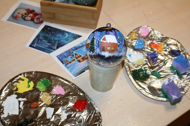 - Матеріали: Ялинкові прикраси, акрилові фарби, пензлі