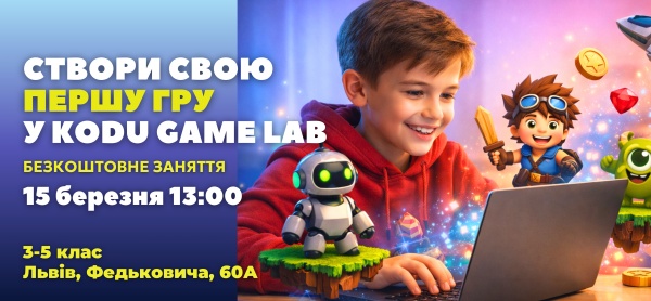 На занятті школярі познайомляться із середовищем Microsoft KODU Game Lab – спеціальною платформою, де програмування пояснюється просто та зрозуміло через візуальні команди.