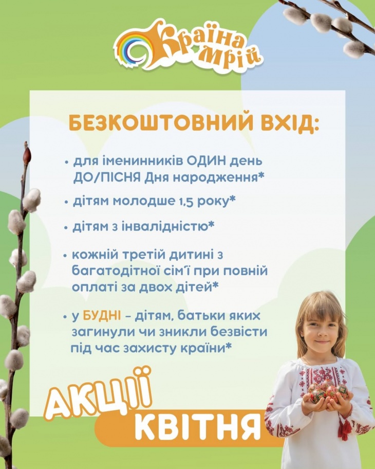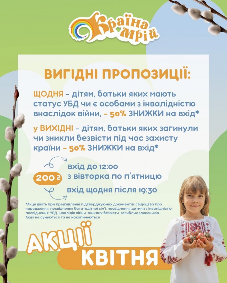 - Акції квітня. Вигідні пропозиції — більше вигоди для сімейного відпочинку.