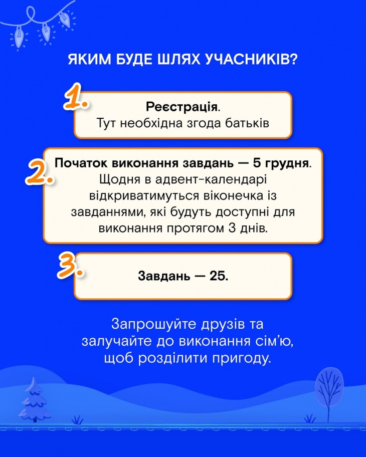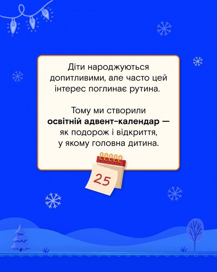 Щоб вечори наповнилися пригодами, ГО «Навчай для України» створила Освітній адвент-календар для учнів середньої та старшої школи. Участь — безкоштовна!