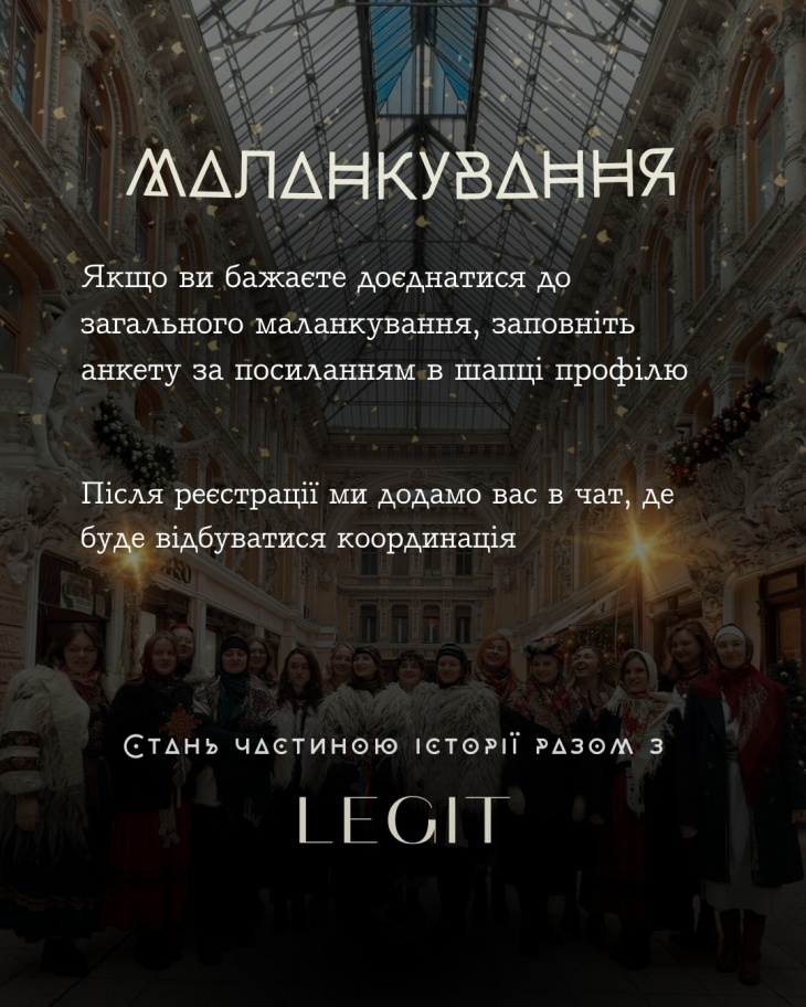- Загальне маланкування – хода містом з елементами маланкування та щедрування