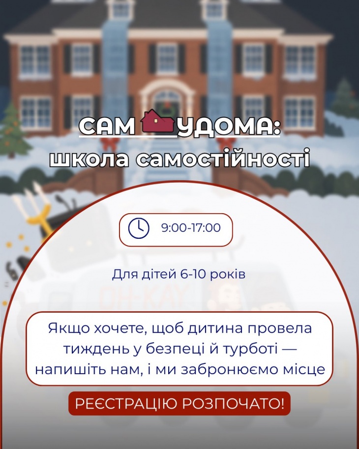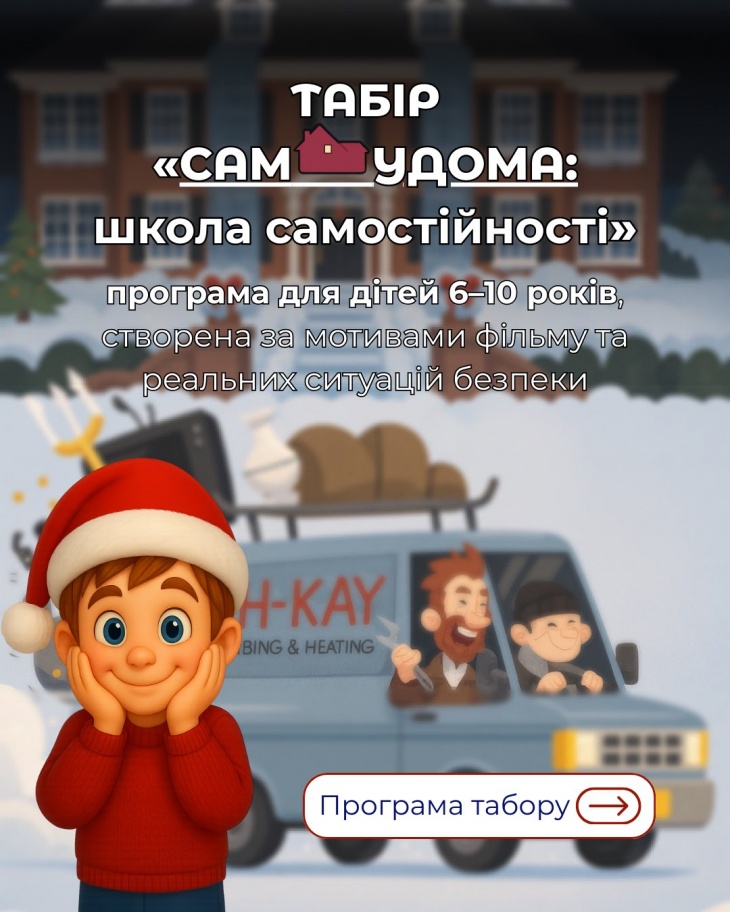 5 днів пригод, практичних навичок і впевненості — у форматі, який діти обожнюють! Усе побудовано навколо сюжету з фільму «Сам удома», де кожен день — новий виклик і нова навичка.