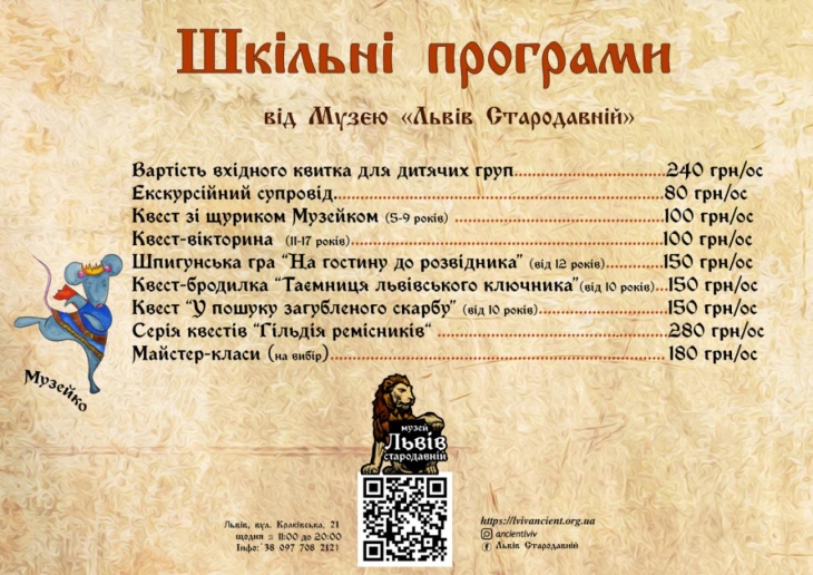З екскурсіями та квестами для дітей можна ознйомитись за посиланням.