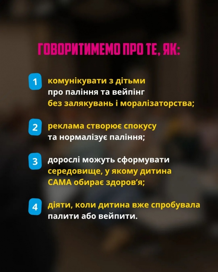 Вищезгадані цифри свідчать: діти не просто стикаються з тютюном — вони живуть поруч із ним. І їм потрібна чесна, сучасна, підтримувальна розмова, а дорослим та оточенню — зрозумілі методики, як таку розмову почати.
