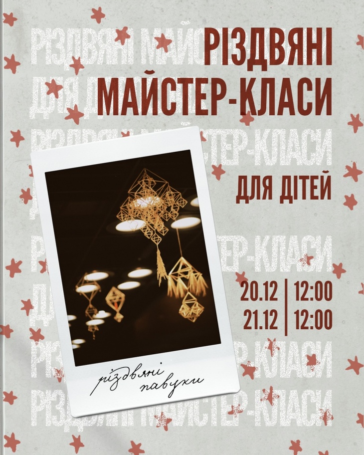 - 21 грудня, 12:00 - Дитячий майстер-клас із виготовлення різдвяних павуків