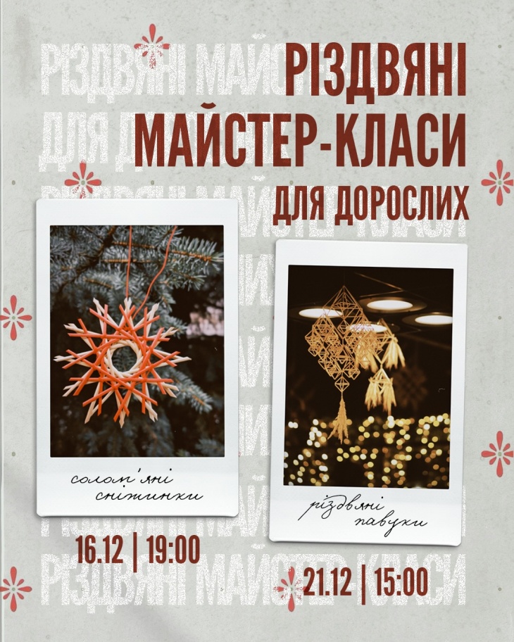 - 16 грудня, 19:00 - Майстер-клас із виготовлення солом’яних сніжинок