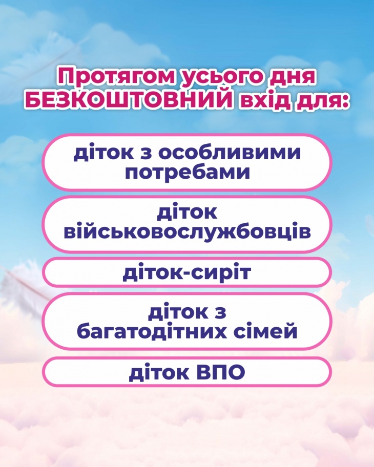 А також протягом усього дня - безкоштовний вхід для: