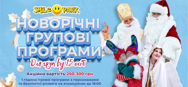 вихідні: 300 грн (вартість квитка для груп від 15 діток )