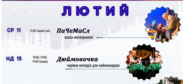 У першій половині ЛЮТОГО сцена наповниться веселими, чарівними та пригодницькими історіями.