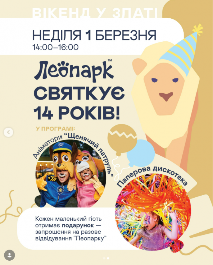 - 14:00–16:00 Леопарк святкує 14 років!