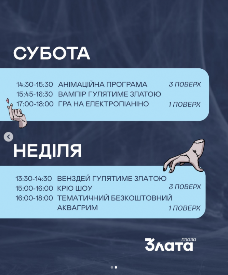 На вас чекає зустріч з Венздей та вампіром, кріо-шоу і тематичний аквагрим - обов'язково завітайте та не забудьте про фото!