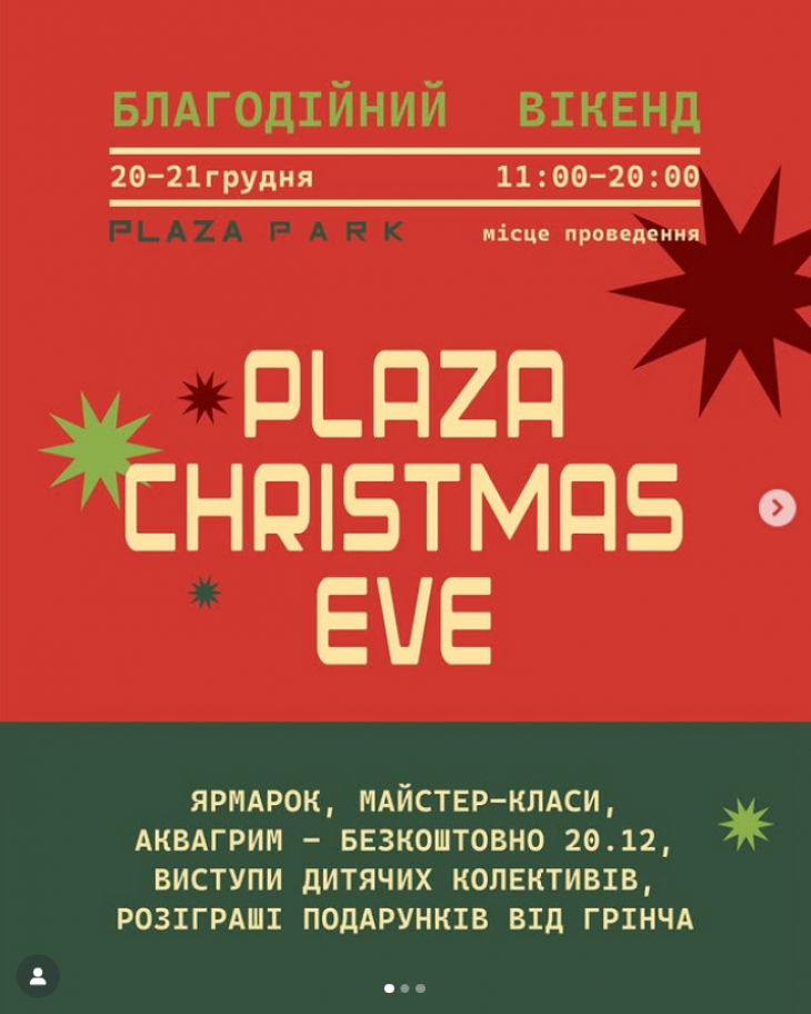 Plaza Christmas Eve: різдвяний благодійний вікенд у ТРЦ Плаза Парк