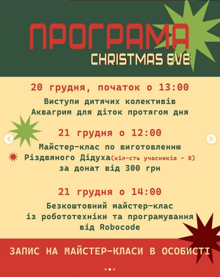 - о 12:00 - майстер-класи по виготовленню дідуха із @alina_myrelax.vn