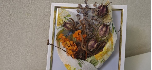 Будемо використовувати природні матеріали та знайомитись з назвами рослин. Діти навчаться формувати гармонійну композицію. Для завершеного вигляду сухоцвіти поміщаються в рамку, яка може бути світлого чи темного відтінків.