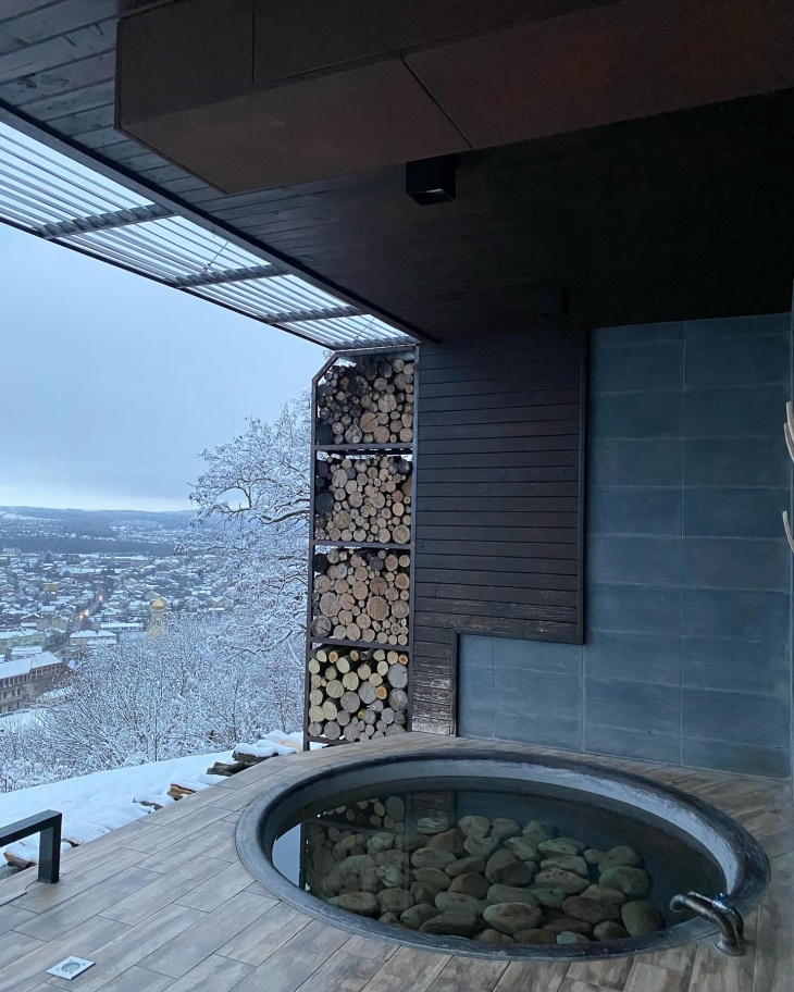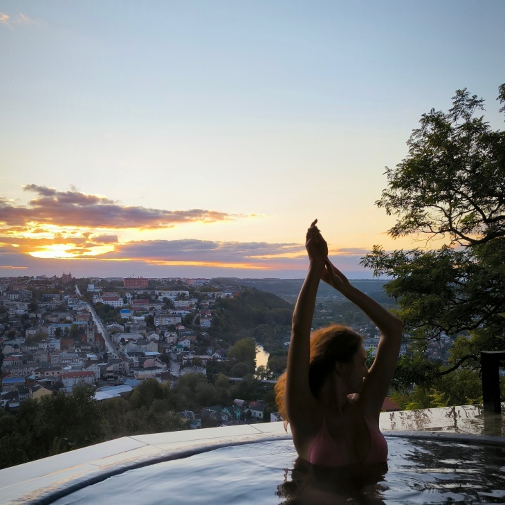 Переїзд до стильного та сучасного відпочинкового комплексу, який знаходиться на горі, що височіє над Чортковом. Панорамний вид на місцевість в поєднанні з неймовірним дизайном інтер’єру комплексу робить його справді особливим й неабияк привабливим місцем відпочинку для туристів. Оздоровчі чани та СПА очікують нас – уявіть: ви в гарячому чані, а перед вами обривається скеля і відкривається прекрасний пейзаж! А в ресторані можна смачно та недорого повечеряти.