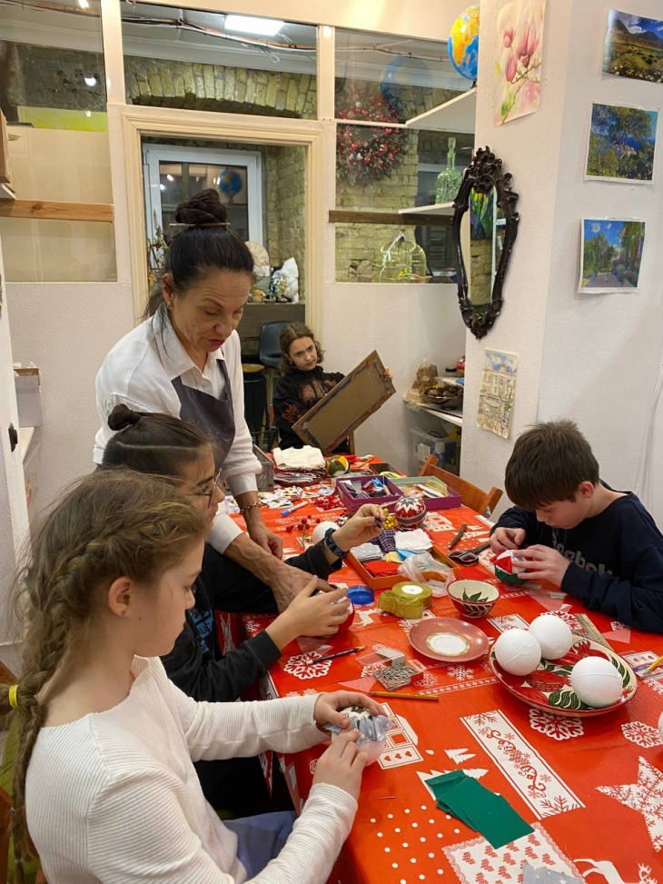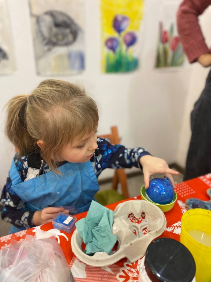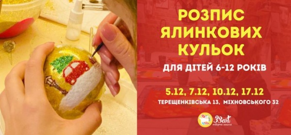 Затишна атмосфера студії 33арт налаштує на творчий і святковий лад і надихне діток на створення чудових різдвяних і новорічних прикрас. Діти зможуть придумати власний декор, або скористатися запропонованими референсами. Досвідчені викладачі зроблять процес простим і зрозумілим навіть для тих, хто розписуватиме кульку вперше.